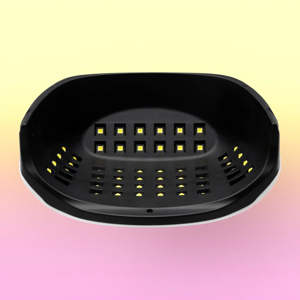 Najnowszej generacji, profesjonalna lampa UV/LED, która szybko i równomiernie utwardza wszystkie żele, lakiery hybrydowe i inne preparaty światłoutwardzalne dzięki zastosowaniu technologii dual led. Emituje białe światło, które nie męczy wzroku. Lampa C1 PLUS posiada energooszczędne źródło światła o dużej mocy i podwójnym zakresie fal 365nm i 405nm. Ponadto, 54 diody które dają łączną moc maksymalną o wartości 150W! Lampa posiada wbudowany czujnik ruchu, timer 10, 30, 60 i 90 sekund, a po uruchomieniu sensora świeci nieprzerwanie do 90 sekund. Tryb 90 sekund „Low Heat Mode” to tryb, w którym moc lampy stopniowo wzrasta co 30 sekund. Niweluje uczucie pieczenia podczas aplikacji żeli budujących. Duży elektroniczny wyświetlacz ułatwia kontrolę czasu.